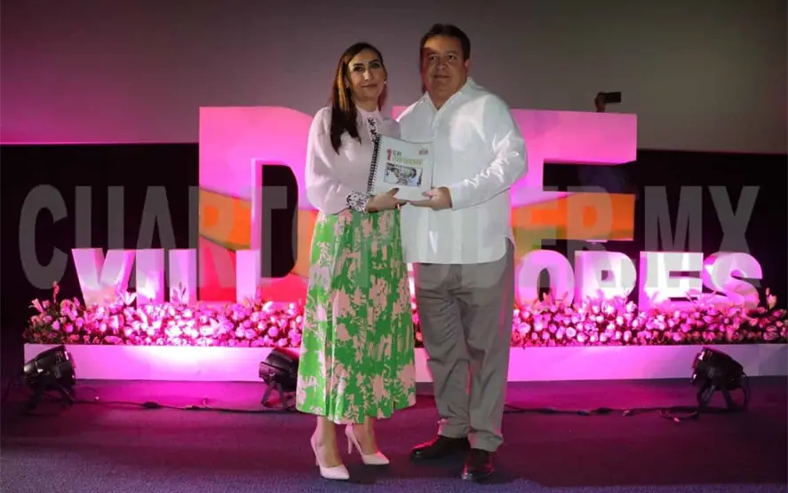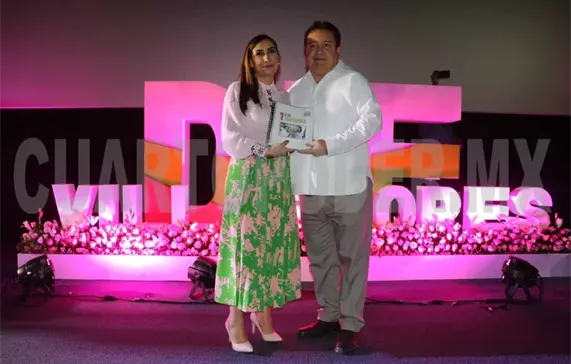 Ante funcionarios municipales y estatales, representantes de cámaras empresariales, del sector educativo, cultural y sociedad civil, la representante del Sistema DIF Municipal, hizo entrega de la glosa del informe al alcalde Mariano Rosales.