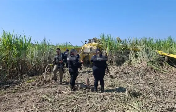 Derivado de un reporte al C5 Escudo Pakal sobre el desplome de una avioneta, la Secretaría de Seguridad del Pueblo (SSP), a través de la Fuerza de Reacción Inmediata Pakal (FRIP) y Guardia Estatal Preventiva, en coordinación con la Agencia de Investigación e Inteligencia Ministerial (AIIM) de la Fiscalía General del Estado (FGE), Secretaría de Seguridad y Protección Ciudadana del Gobierno Federal, Ejército Mexicano, Guardia Nacional y Marina Armada de México, localizaron una aeronave de color amarillo en medio de un plantío de caña de azúcar en el municipio de Acapetahua.
