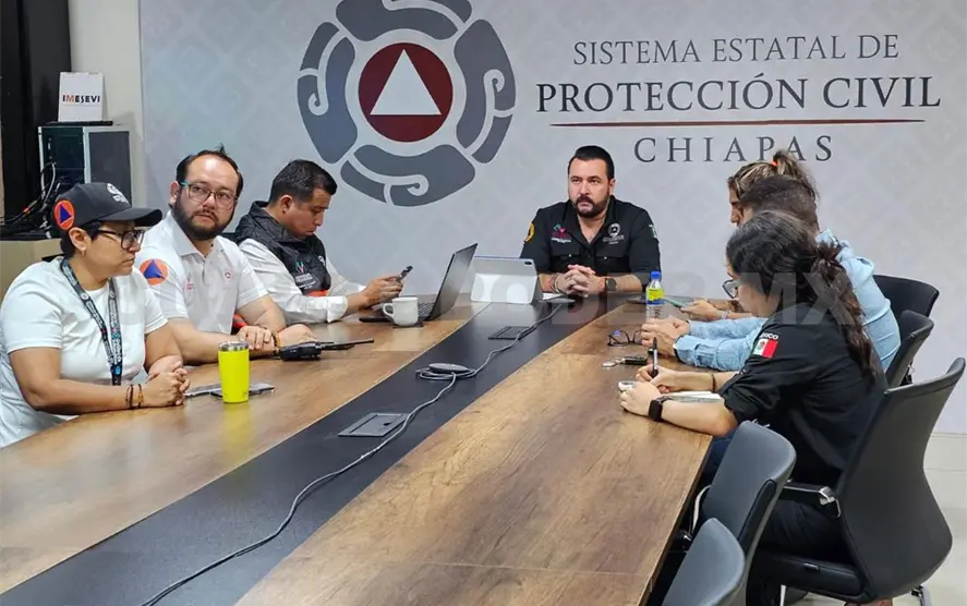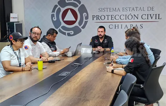 En el marco del Sistema Estatal de Protección Civil, la Secretaría de Protección Civil del Gobierno de Chiapas realizó una reunión informativa de carácter urgente con Secretarías de Protección Civil de diversos municipios para compartir el pronóstico de lluvias intensas que se tienen durante el fin de semana, derivado de diversos fenómenos hidrometeorológicos.