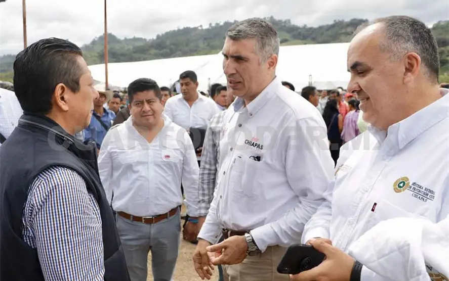 El fiscal general Jorge Luis Llaven Abarca acompañó al gobernador Rutilio Escandón Cadenas a la Entrega de Apoyos a Familias Vulnerables por Frentes Fríos y Entrega de Equipamiento en Materia de Seguridad en el municipio de Chilón, en el cual destacó el compromiso del mandatario estatal de implementar acciones que garanticen el bienestar y la tranquilidad de las y los chiapanecos.