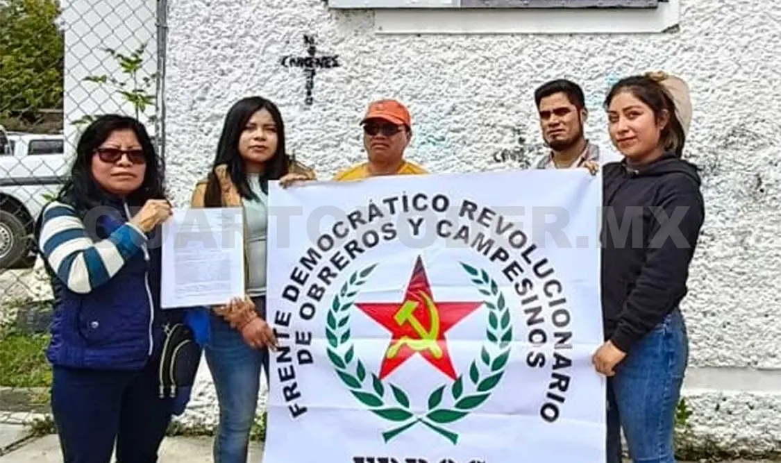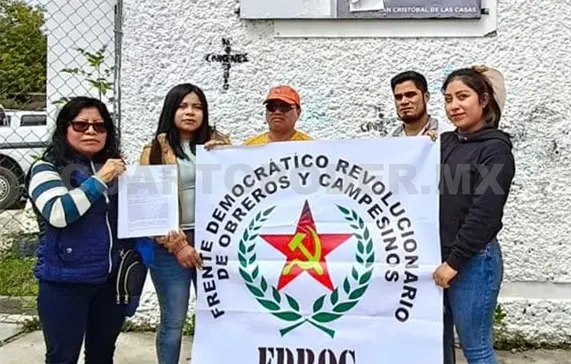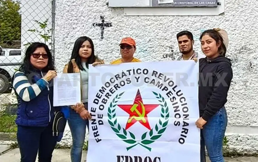 Integrantes de la organización del Frente Democrático Revolucionario de Obreros y Campesinos (Fedroc), se manifestaron frente a las instalaciones de la fiscalía de justicia indígena, ubicadas en el Sur de San Cristóbal de Las Casas.