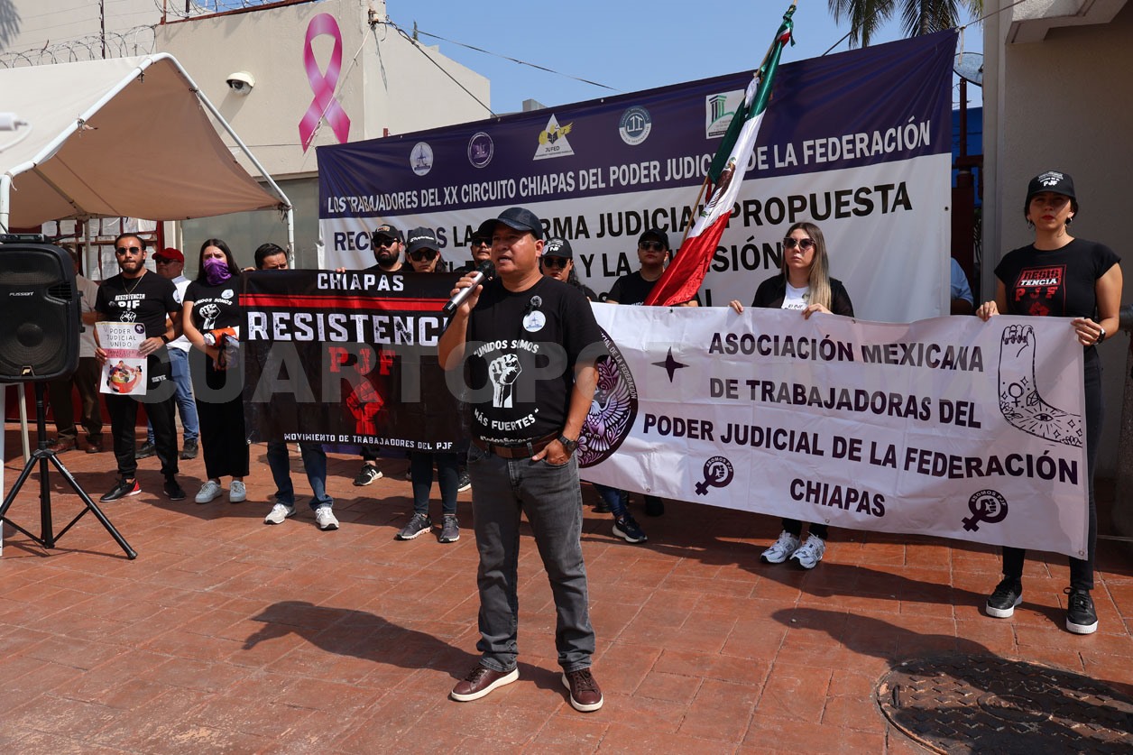 Cabe destacar que los trabajadores del PJF en Chiapas vestían de negro, como manifestación de luto ante las decisiones de los legisladores de aprobar la reforma judicial, la cual, además de que los jueces y magistrados deberán ser elegidos por voto popular o tómbola en lugar de considerar la preparación y la carrera judicial, esto aprueba a la vez el despido de muchos trabajadores del PJF; incluyendo mujeres que “batallaron bastante para tener el cargo de jueces, que sacrificaron tiempo con su familia, con sus esposos y eso al gobierno no les importa”.