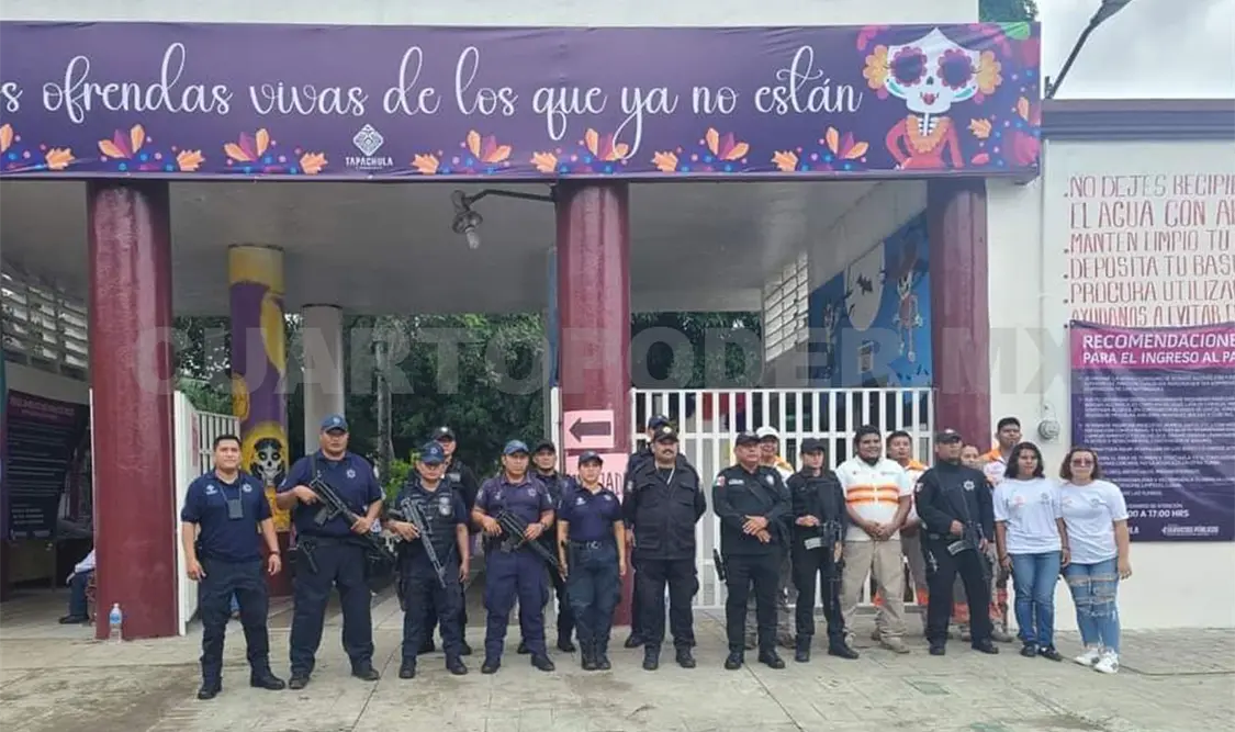 Con la finalidad de garantizar la tranquilidad y seguridad de las familias que acuden a los panteones, el Ayuntamiento de Tapachula instrumentó el programa de seguridad, el operativo Día de Muertos.