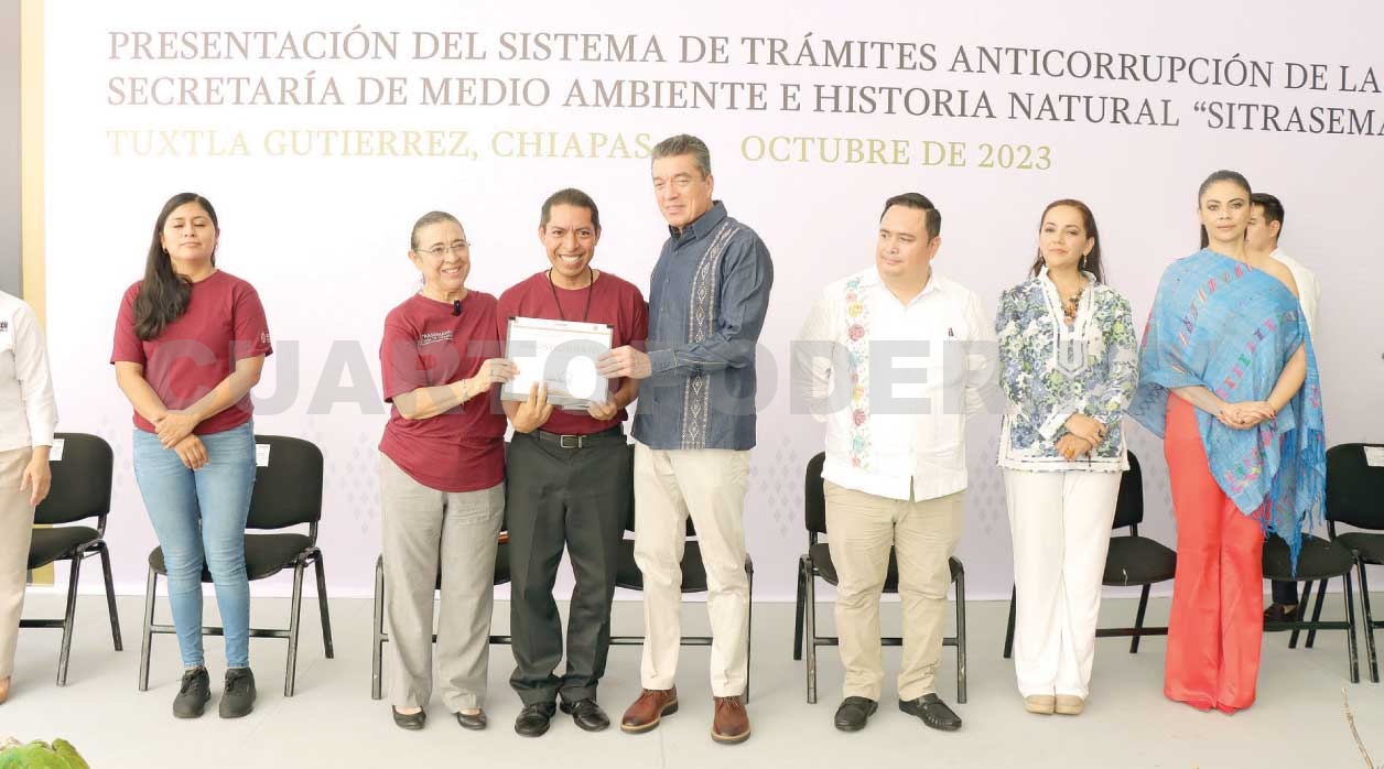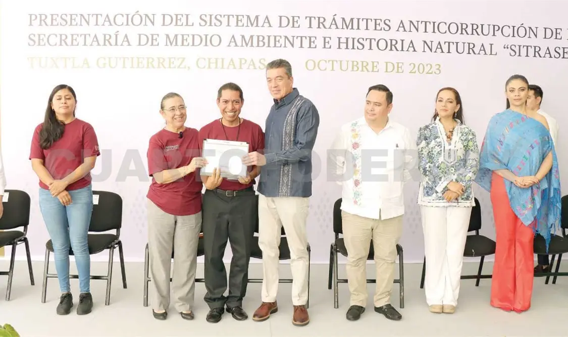 En la presentación del Sistema de Trámites Anticorrupción de la Secretaría de Medio Ambiente e Historia Natural (Sitrasemahn), el gobernador Rutilio Escandón Cadenas destacó que además de modernizar los servicios públicos que se ofrecen a la ciudadanía y al sector empresarial en el rubro de vivienda, este mecanismo digital hará más eficiente y ágil la tramitología, abona al combate de la corrupción y al cuidado ambiental con la reducción de papelería.