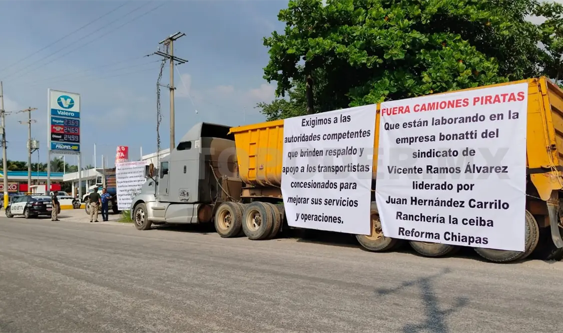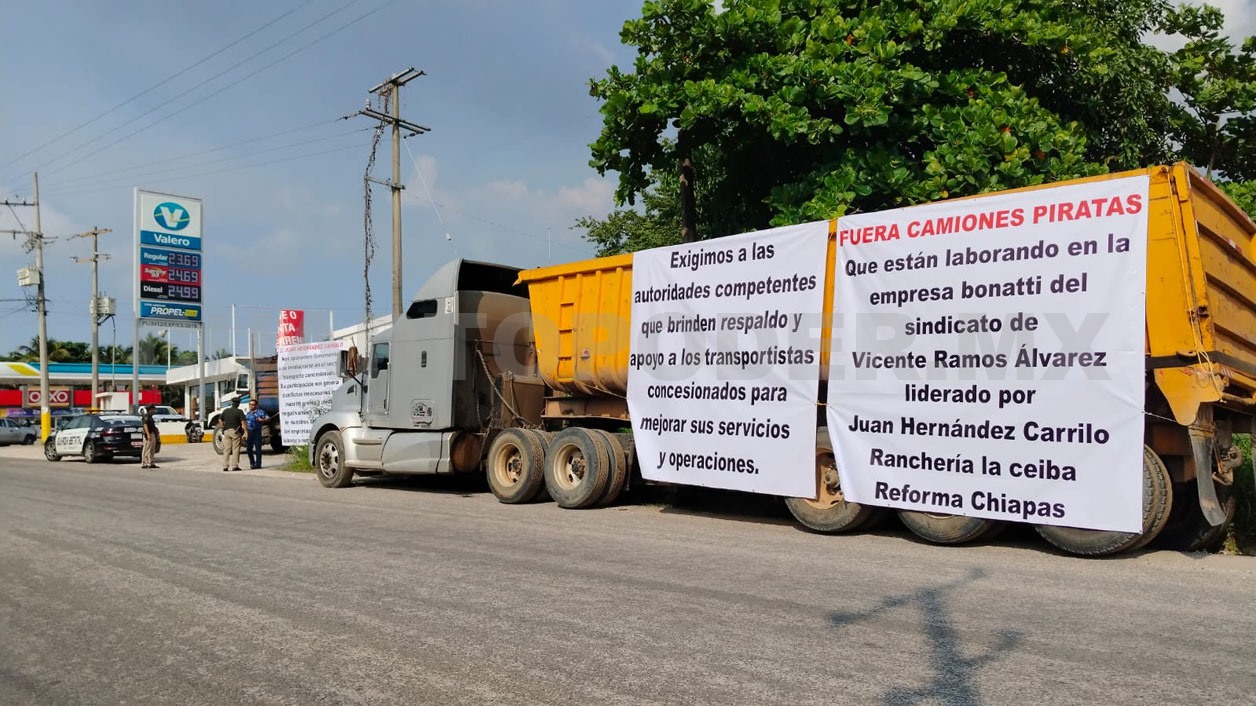 Transportistas concesionados de carga, volteos y taxis de Reforma, Ostuacán y Pichucalco realizaron este lunes una movilización en las principales calles del primer municipio, esto para exigir al Gobierno Estatal acciones inmediatas contra el transporte irregular (pirata) en esta región Norte de la entidad. Acusados de operar con la protección de funcionarios y líderes sindicales.