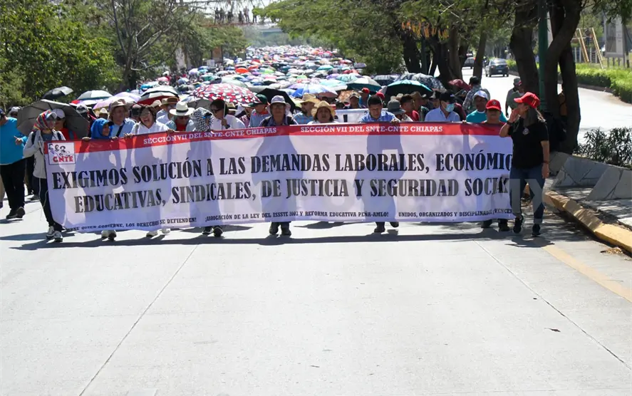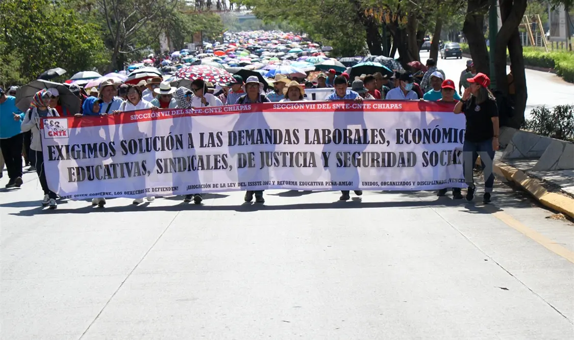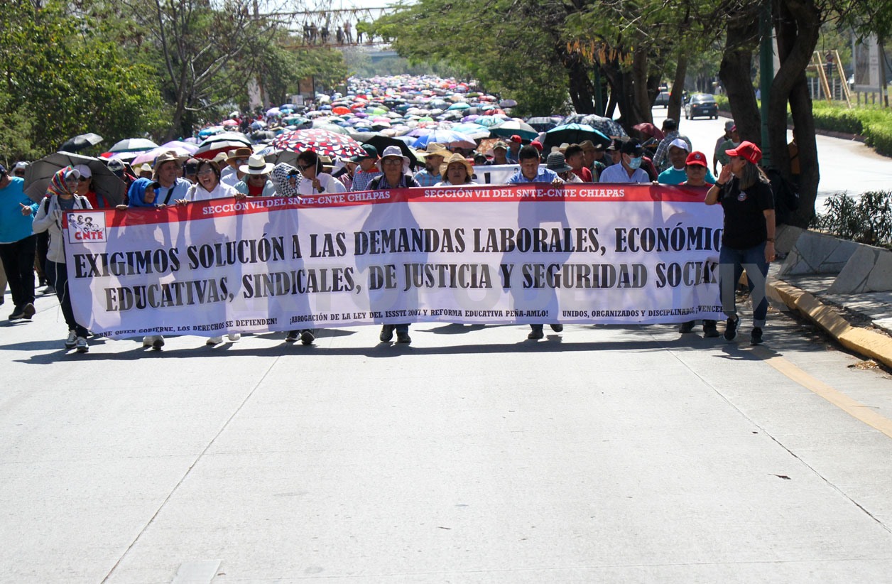Este jueves el magisterio adherido a la Coordinadora Nacional de los Trabajadores de la Educación (CNTE) se movilizaron nuevamente en un paro de 48 horas, que inició con una marcha desde el parque Chiapasiónate rumbo al zócalo de Tuxtla Gutiérrez.