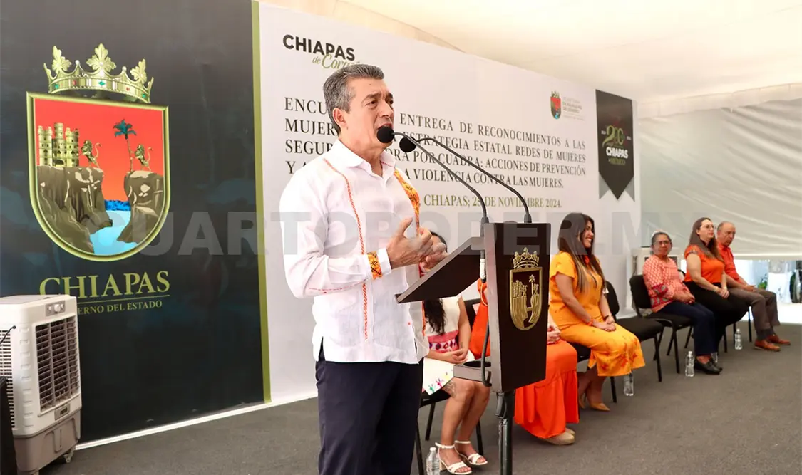 Como parte de las acciones de prevención y atención de la violencia contra las mujeres, el gobernador Rutilio Escandón Cadenas encabezó el encuentro con integrantes de las Redes de Mujeres Seguras Cuadra por Cuadra, a quienes reconoció por conformar esta estrategia estatal en la que se capacitaron en temas de derechos humanos, igualdad de género, salud, violencia de género, autonomía económica y liderazgo.