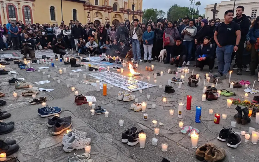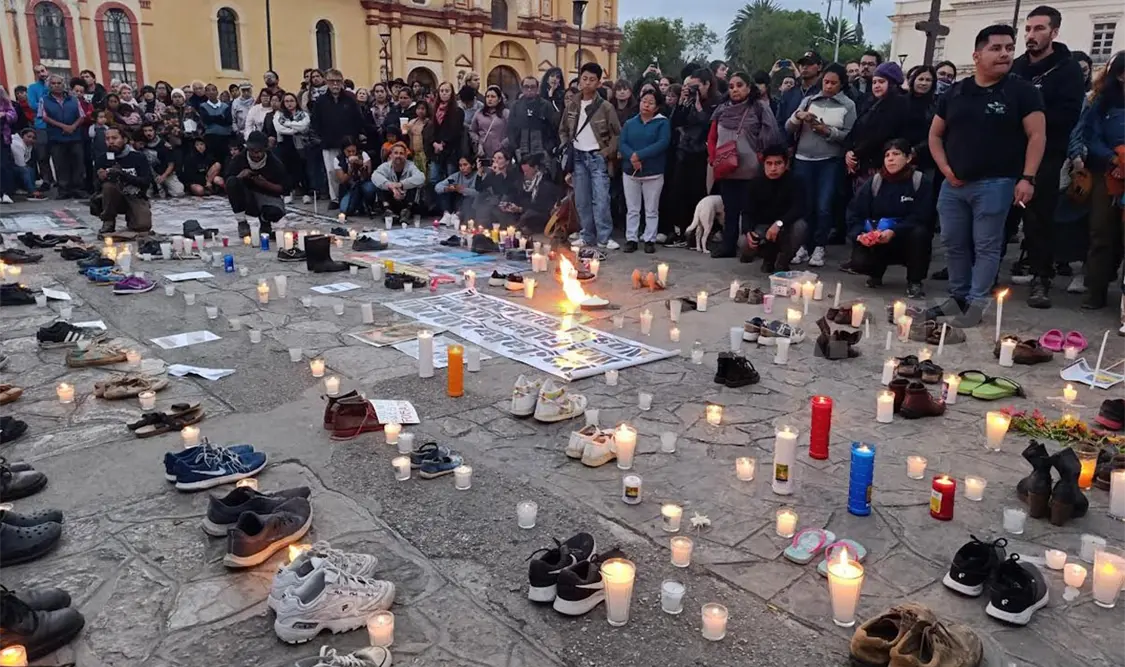 Con velas, zapatos y fotografías de personas desaparecidas, alrededor de 200 personas se reunieron este martes en la Plaza Catedral de San Cristóbal “para acompañar desde el sur de México el dolor y la dignidad de las madres y familias buscadoras”.