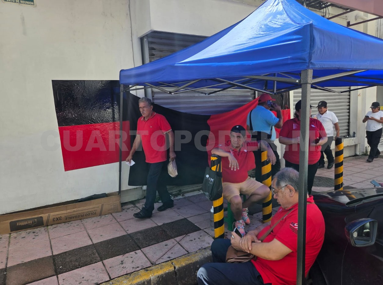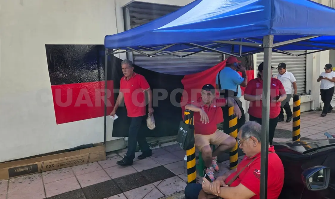 Desde muy temprano, un grupo de trabajadores sindicalizados colocaron la bandera roja y negra como símbolo de lucha y se apostaron a las afueras de las instalaciones de la empresa para impedir el ingreso de directivos.