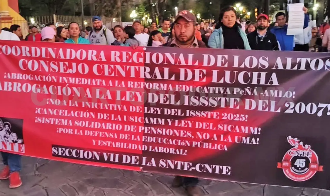 La Sección 7 del Sindicato Nacional de trabajadores de la Educación (SNTE), adherida a la Coordinadora Nacional de Trabajadores de la Educación (CNTE), acordó realizar un paro de labores de 48 horas el 7 y 8 de marzo en contra de la iniciativa de ley del Instituto de Seguridad y Servicios Sociales de los Trabajadores del Estado (Issste).