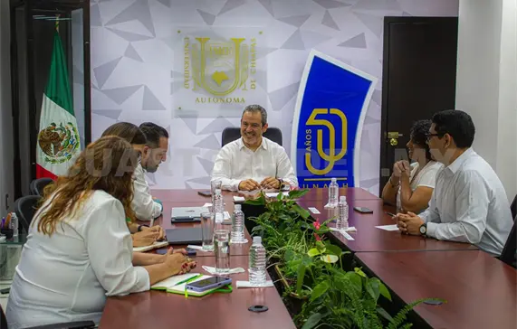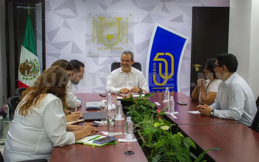 Participaron de esta reunión, por parte de la Unach, la encargada de la Coordinación General de Relaciones Interinstitucionales, Silvia Concepción Ramírez Peña, y el secretario privado de la Rectoría, Adrián Reyes Vázquez.
