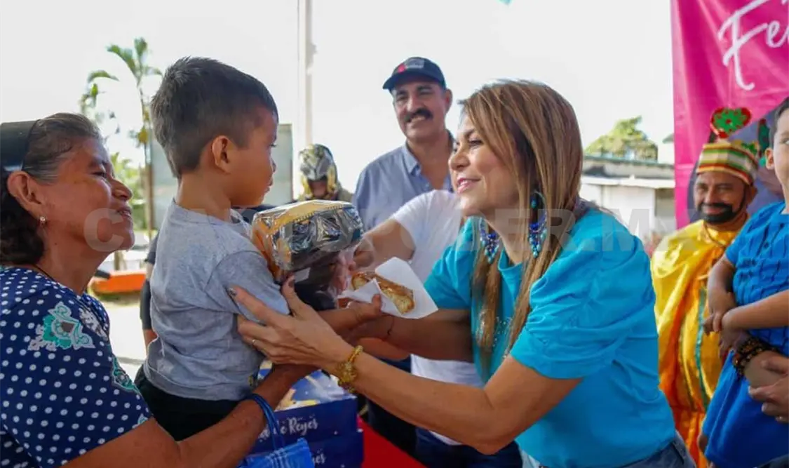 Al encabezar el festejo del Día de Reyes, en el ejido El Edén, en la zona media alta, la presidenta municipal Rosa Irene Urbina Castañeda ratificó el compromiso del Ayuntamiento de seguir trabajando para el presente y futuro de los niños de Tapachula.