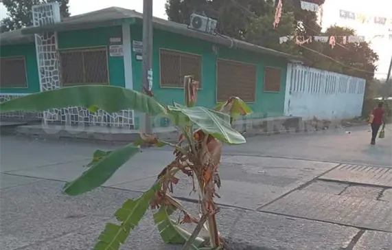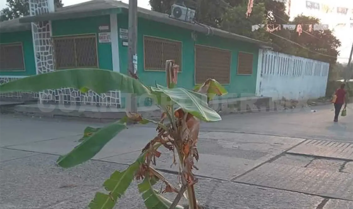 Mencionó que los vecinos decidieron sembrar plantas de plátano, ya que es uno de los cultivos principales en el municipio; lo hicieron sobre la avenida Hidalgo y calle Vicente Guerrero.