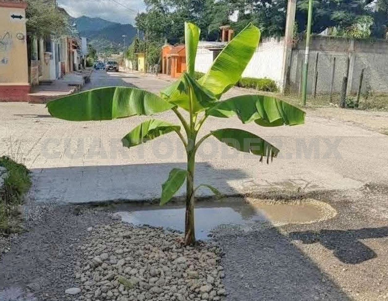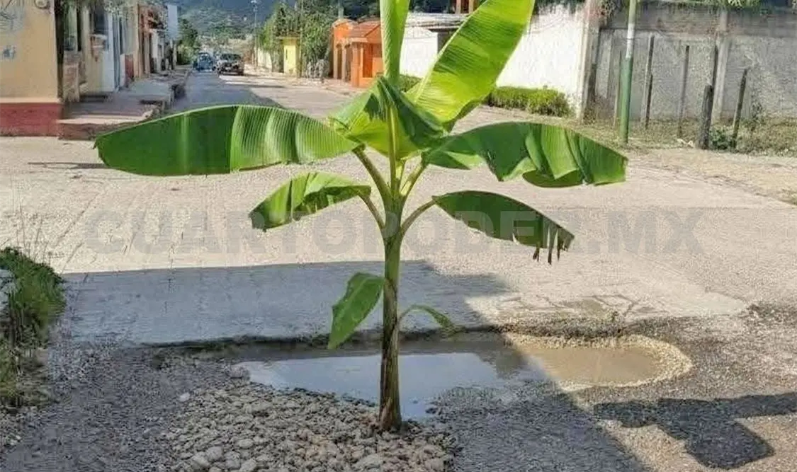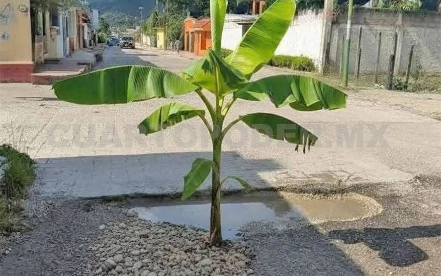 Está creativa forma de manifestarse fue vista en diversos puntos de la región donde los hoyos y baches dificultan el libre tránsito, lo más curioso es que se sabe que el mismo personal del ayuntamiento acudió a las calles a retirar las matas de plátano, sin embargo, ninguno reparó los desperfectos.