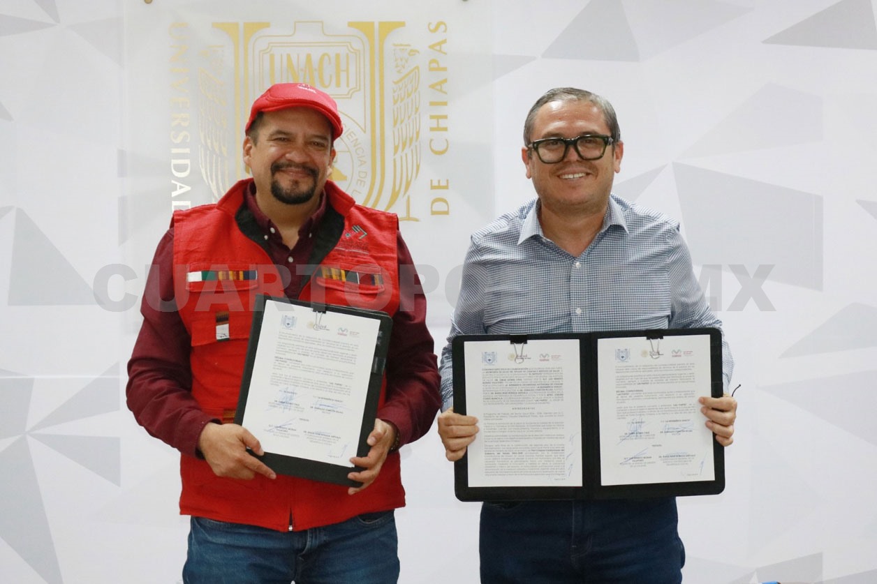 Con el objetivo de elevar indicadores en los 12 municipios más olvidados de Chiapas, el secretario de Salud del estado, Omar Gómez Cruz, y el rector de la Benemérita Universidad Autónoma de Chiapas (Unach), Oswaldo Chacón Rojas, signaron un convenio de colaboración para mejorar el acceso a los servicios de salud y seguridad social de la población.