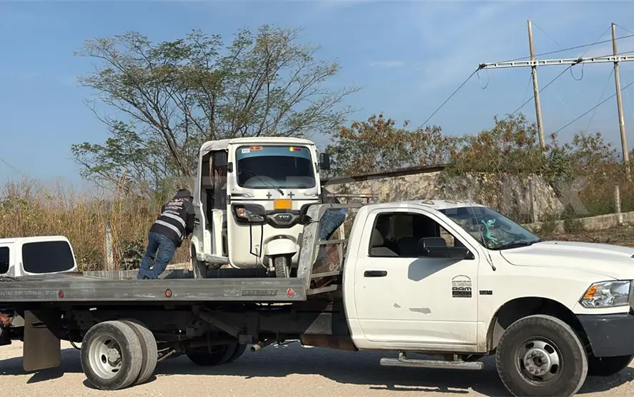 La primera unidad, Ecotaxi sin número económico, operaba en la ruta de la colonia Sacramento, fue remitida por no contar con concesión y permiso, ni certificado de aptitud.