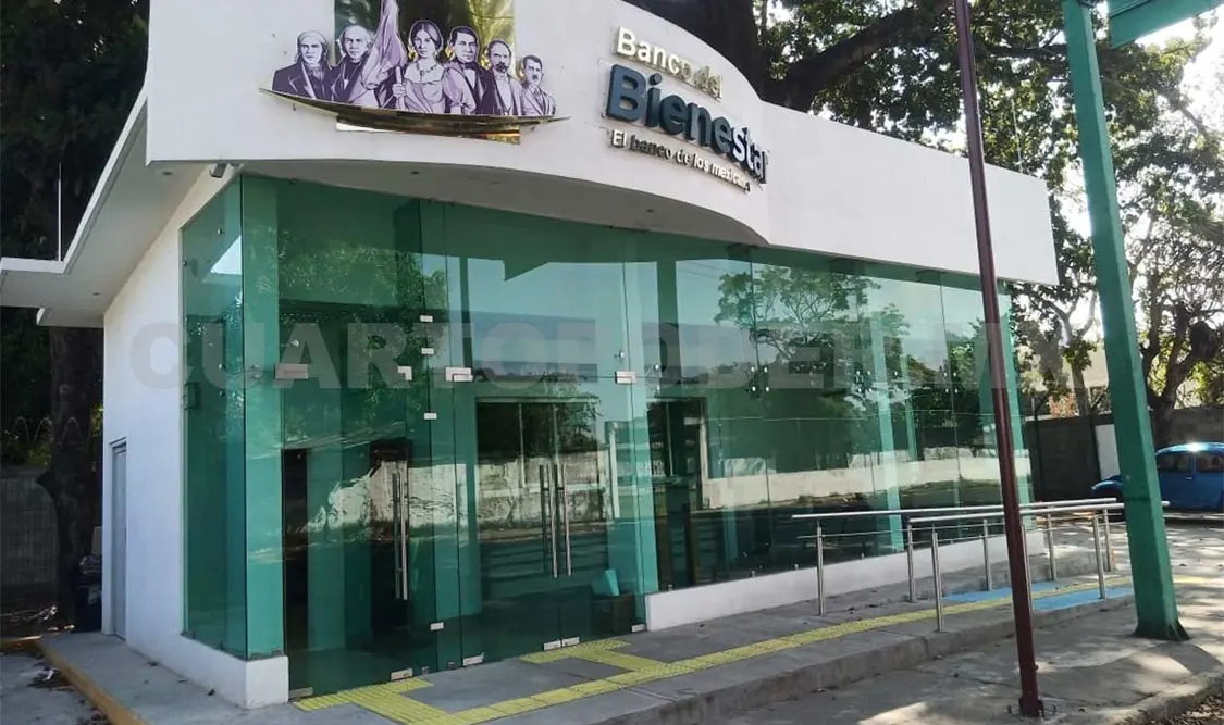 Desde hace algunas semanas la obra del Banco del Bienestar, ubicado en la 13 avenida Sur en Tapachula, dentro del perímetro de la 36a. Zona Militar, habría quedado totalmente concluida en cuanto a su estructura, pero sin los cajeros automáticos como en todo el país, y sin sistema ni equipos, mucho menos personal de la institución.