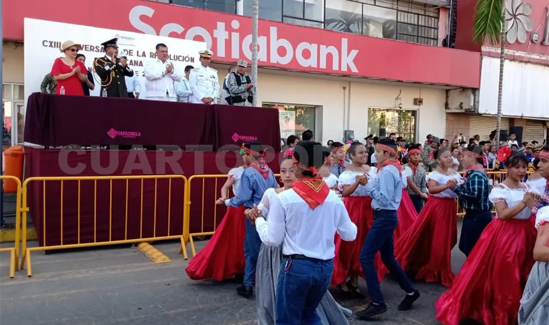 Sin incidentes fue realizado el desfile conmemorativo por el “113 Aniversario del Inicio de la Revolución Mexicana”, en Tapachula, en el que destacó la participación del Ejército Mexicano, Guardia Nacional, estudiantes y bomberos.