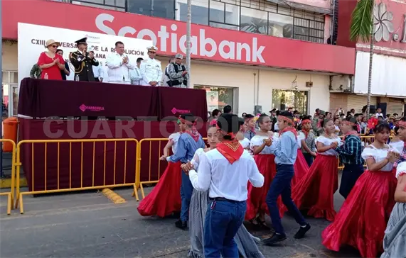 El reporte de los organizadores indicó que participaron mil 877 personas en el desfile, en el que se presentaron tablas rítmicas, bailes tradicionales, pirámides humanas, aunando a los contingentes militares de “Las Adelitas” y “Francisco I. Madero”, así como perros entrenados para la detección de drogas y armas.