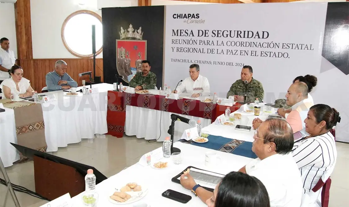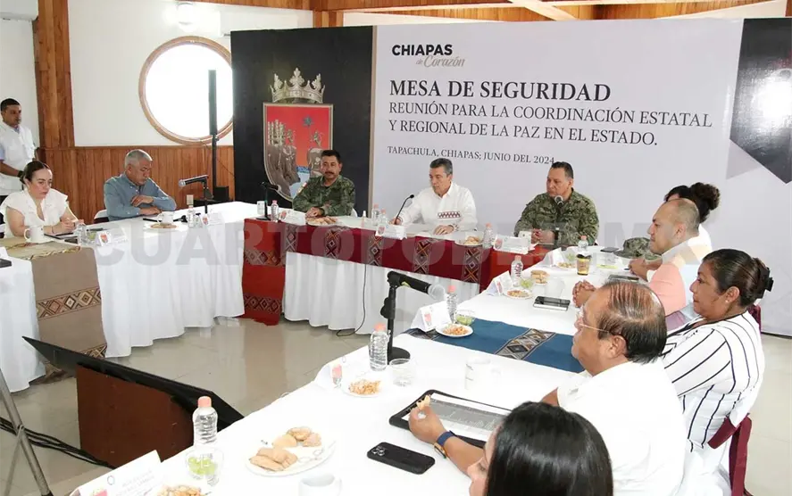 En el municipio de Tapachula, el gobernador Rutilio Escandón Cadenas encabezó la Mesa de Coordinación Estatal para la Construcción de la Paz y la Seguridad, donde informó que, de acuerdo con el pronóstico meteorológico, van a continuar las lluvias en Chiapas, pero con mayor intensidad en los municipios de las regiones Norte, Selva, De Los Bosques, Sierra, Istmo-Costa y Soconusco.