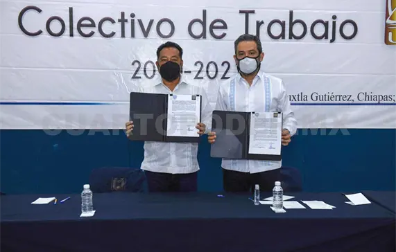 Con un acuerdo de aumento del 3.4 por ciento directo al salario y de 0.9 por ciento en prestaciones, la administración central de la Universidad Autónoma de Chiapas, encabezada por el rector Carlos F. Natarén Nandayapa y el Sindicato de Trabajadores Administrativos (Staunach), representado por su secretario general, Pedro Jiménez Pérez, firmaron el Contrato Colectivo de Trabajo 2021.