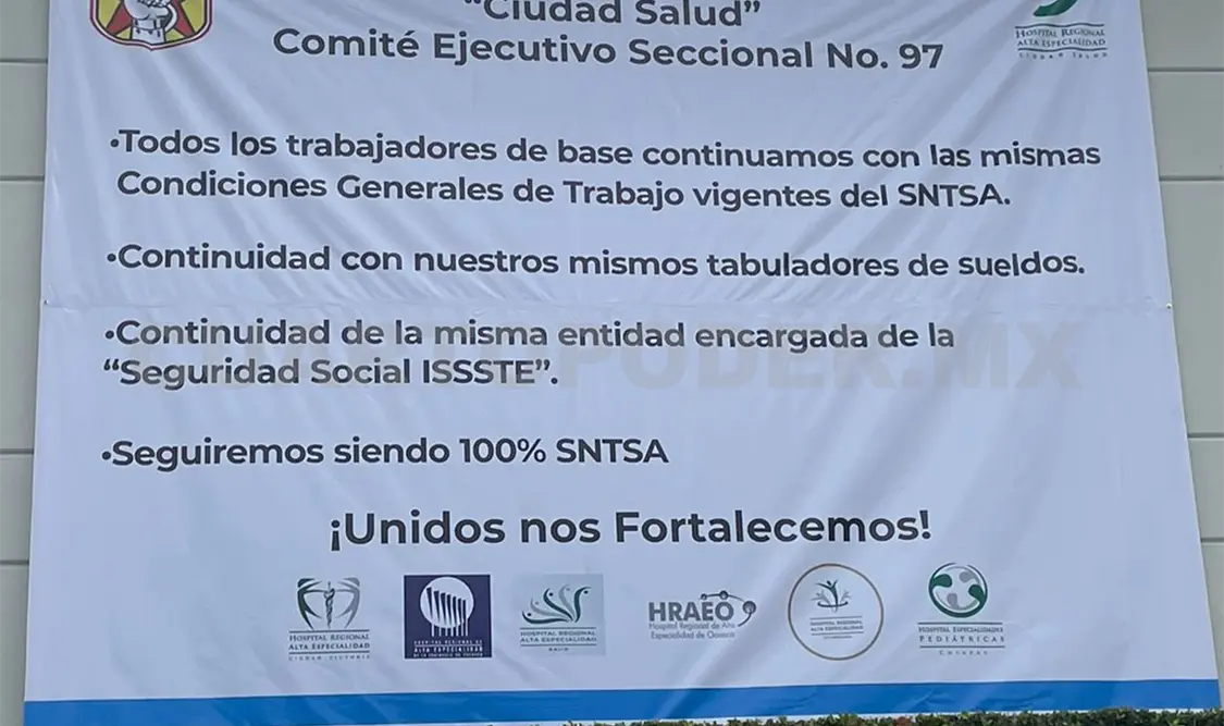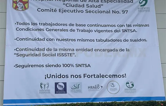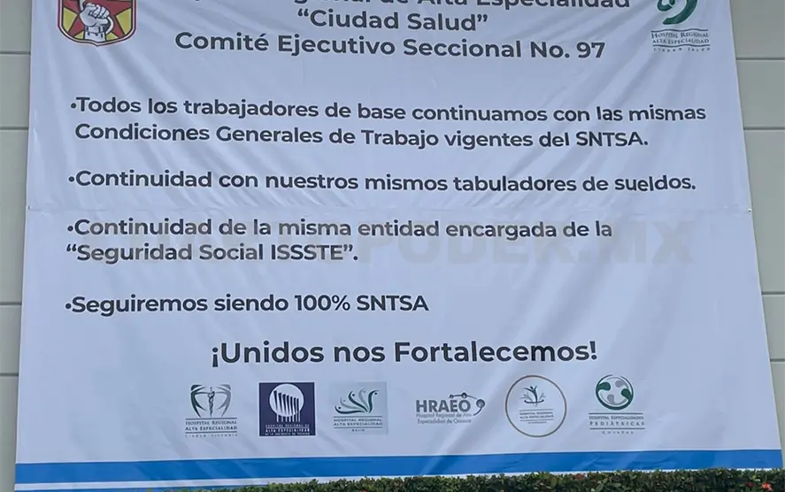 En el Hospital de Especialidades Pediátricas (HEP), de Tuxtla, y el Hospital Regional de Alta Especialidad (HRAE) “Ciudad Salud”, de Tapachula, sus representaciones sindicales colocaron lonas para expresarse —junto con la base trabajadora— sobre la defensa de sus derechos, una vez que se haga oficial el decreto de desincorporación y fusión al IMSS-Bienestar.