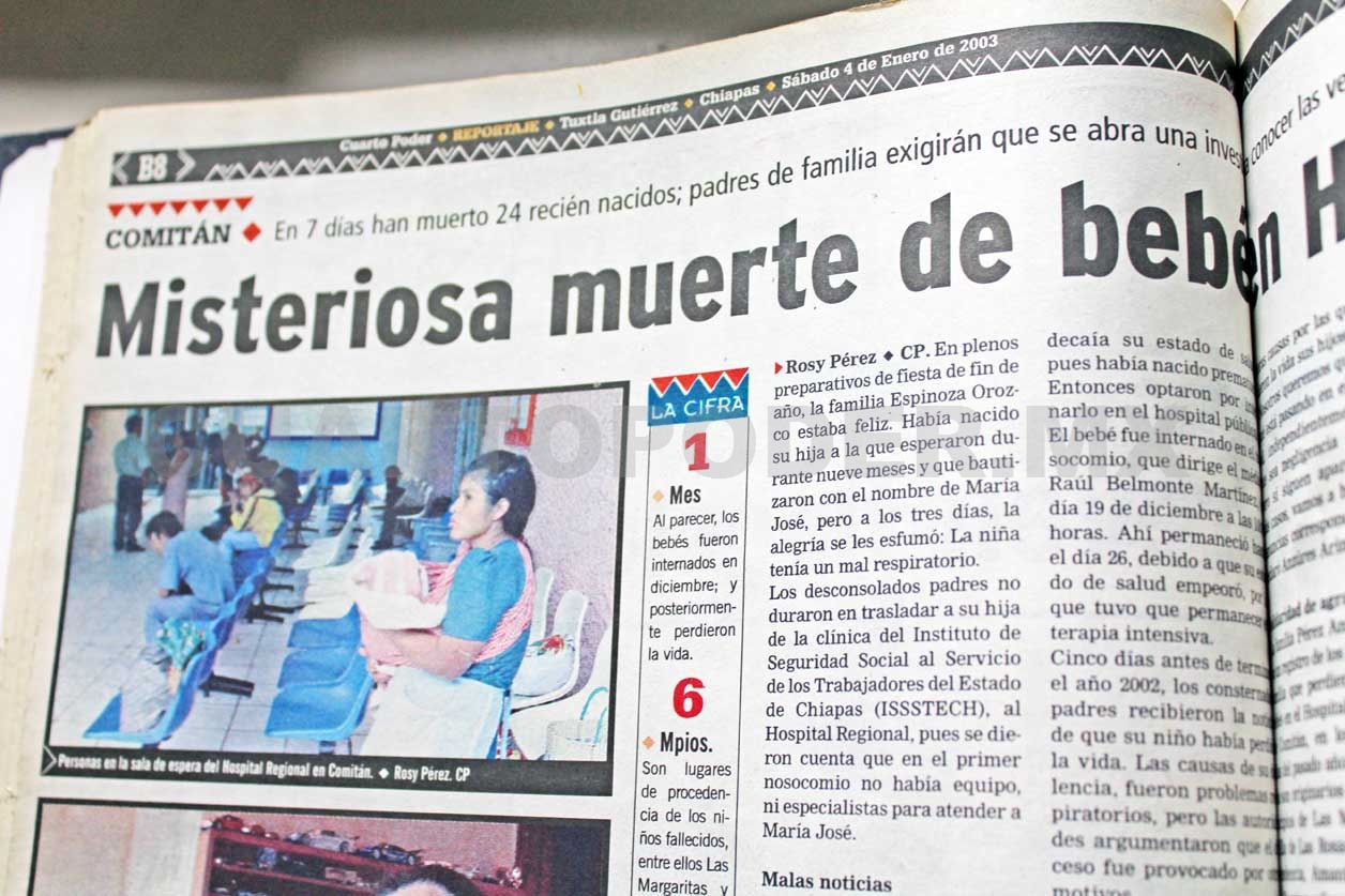El 3 de enero de 2003 la Comisión Estatal de Derechos Humanos de Chiapas radicó de oficio la queja número CEDH/COM/002/01/2003, por la denuncia aparecida en un programa de radio de una estación local en el que se informó sobre la presunta negligencia médica en el Hospital General de Comitán a causa de la cual fallecieron cuando menos 18 menores recién nacidos.