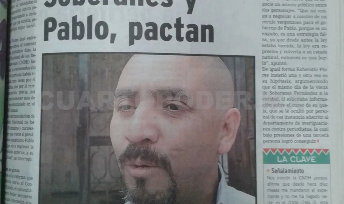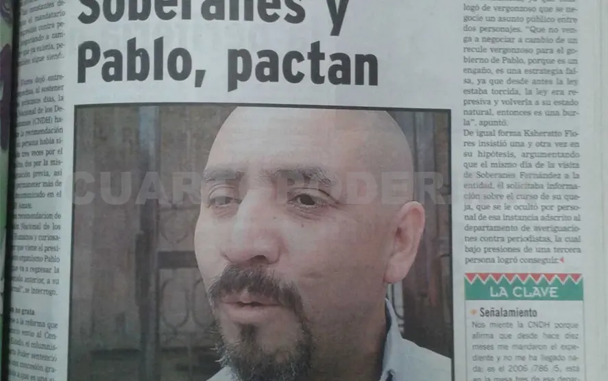 De igual forma Ksheratto Flores insistió una y otra vez en su hipótesis, argumentando que el mismo día de la visita de Soberanes Fernández a la entidad, él solicitaba información sobre el curso de su queja, que se le ocultó por personal de esa instancia adscrito al departamento de averiguaciones contra periodistas, la cual bajo presiones de una tercera persona logró conseguir.