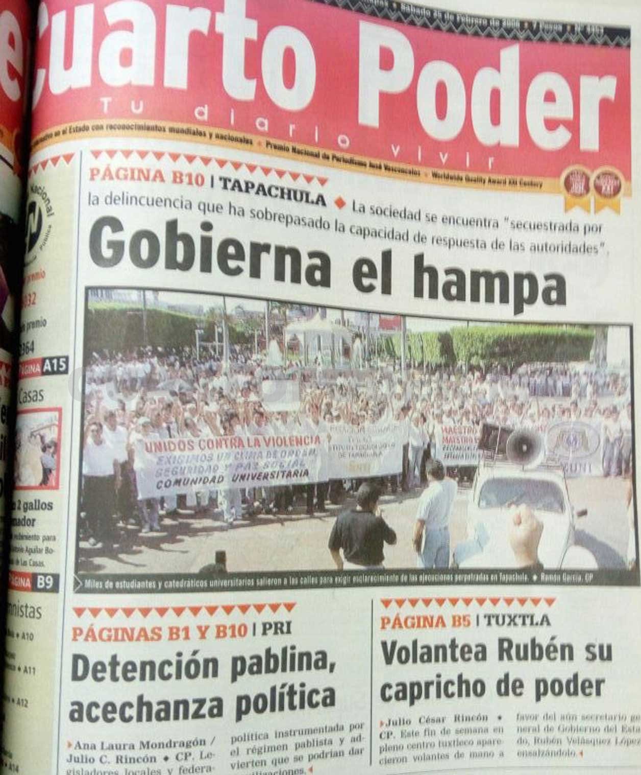 El representante popular por el Distrito X con cabecera en Bochil, añadió que en esta administración no únicamente se les persigue a los políticos, sino que se aplica la misma regla a todos aquellos que representan un peligro para el ejecutivo, como los periodistas, a quienes se les coarta la libertad de expresión.