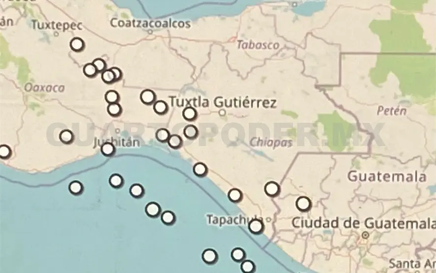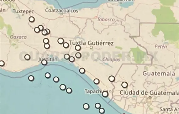 Entre el martes y miércoles, en Chiapas, el Servicio Sismológico Nacional reportó al menos 16 temblores que van de la magnitud 3.4 a 5.7.