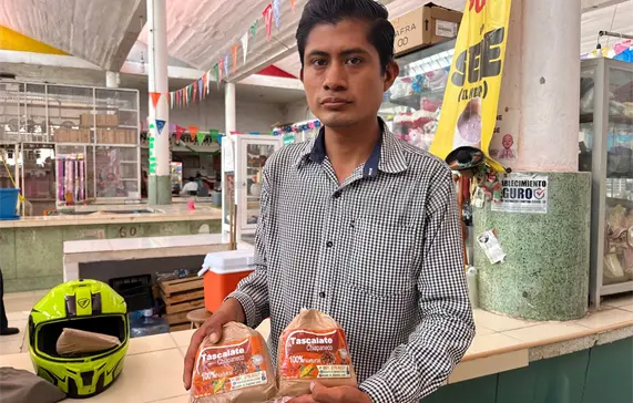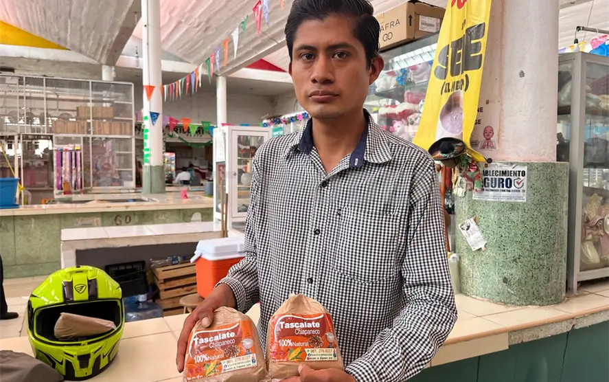 Misael se hace cargo de las compras de la materia prima con la que elabora el tascalate, para después hacer el trabajo de dorar el maíz, y colocar el resto de ingredientes como el cacao, achiote y azúcar.