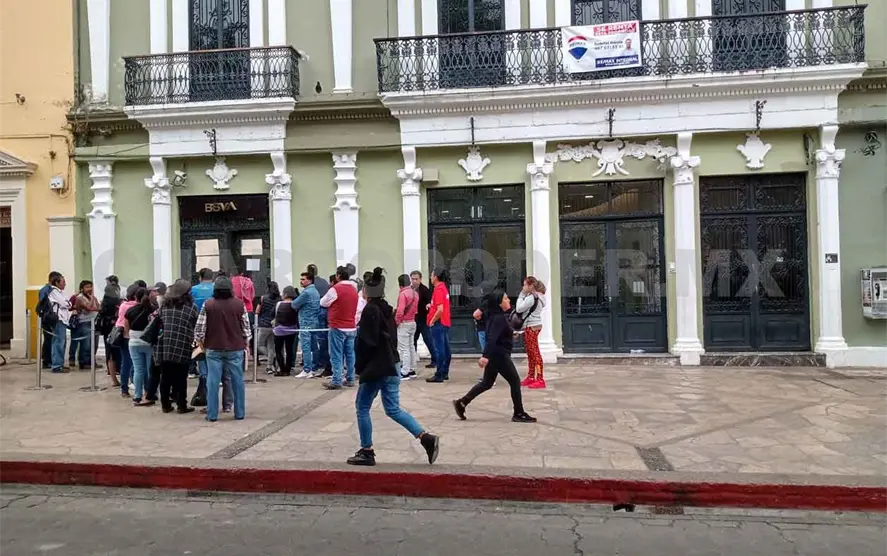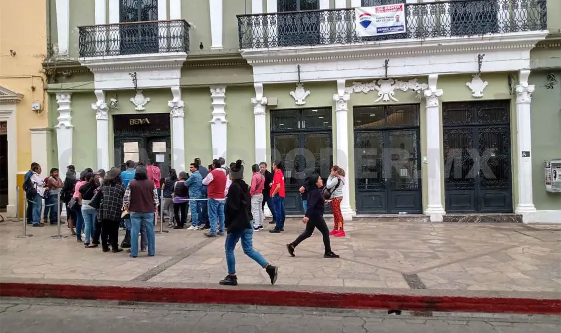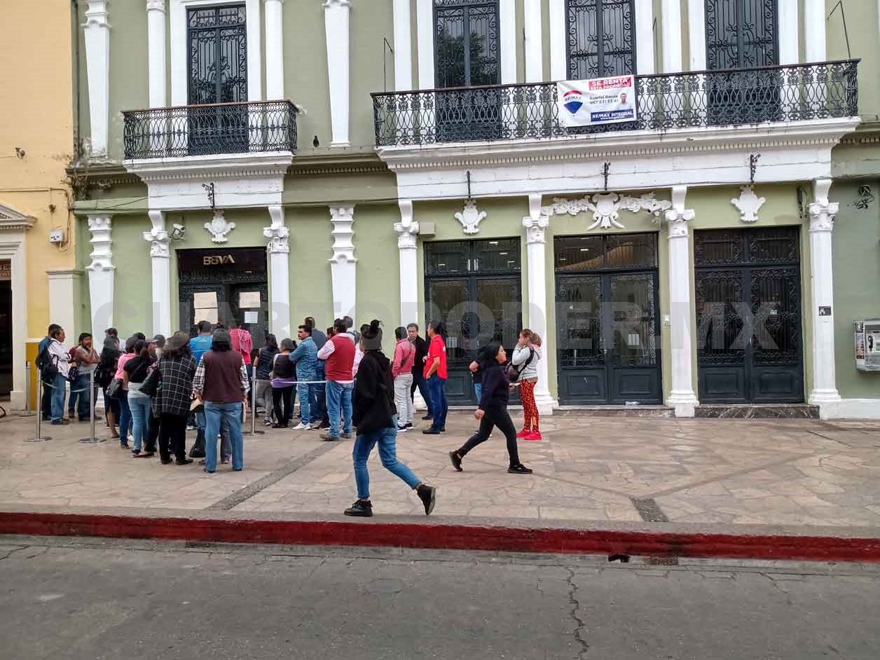 Como medida de prevención ante el coronavirus, sucursales bancarias de San Cristóbal de Las Casas limitan la atención a usuarios cerrando sus puertas, para evitar aglomeración.