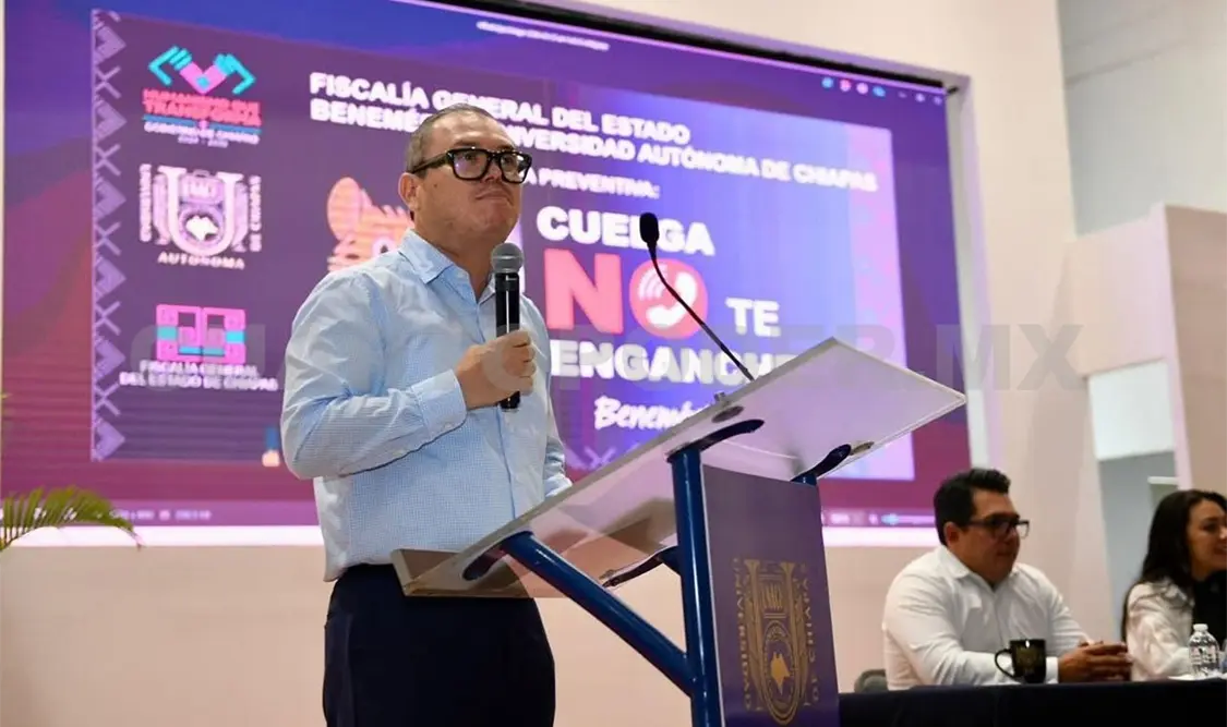 En cumplimiento con la seguridad, la integridad y el bienestar de la comunidad universitaria, la Universidad Autónoma de Chiapas (Unach), en coordinación con la Fiscalía General del Estado de Chiapas (FGE), puso en marcha la Campaña sobre prevención de Extorsión Telefónica y Digital: “Cuelga, no te enganches Benemérita Unach”.