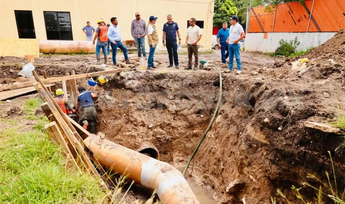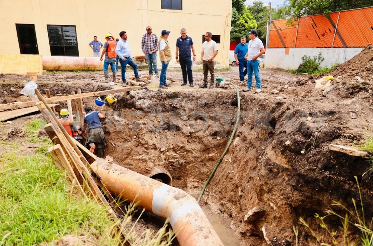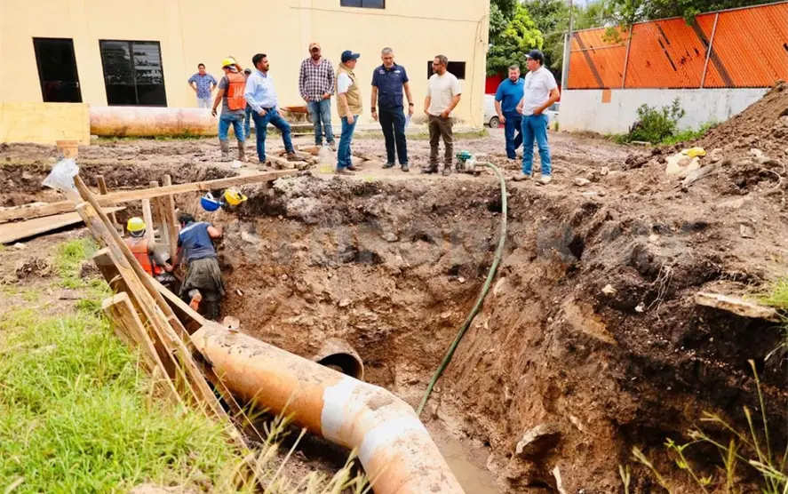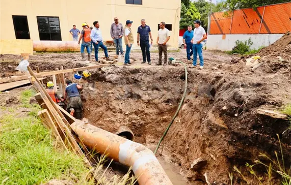 El presidente municipal de Tuxtla Gutiérrez, Ángel Torres, junto al Director General del Smapa, Juan Luis Paniagua, constató la reparación de una fuga en una tubería de 30 pulgadas de diámetro de agua potable en la colonia 24 de Junio.