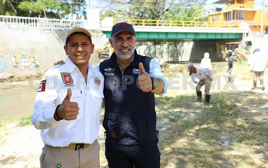 El presidente municipal de Tuxtla Gutiérrez, Ángel Torres Culebro, acompañado del secretario de Protección Civil (PC), Éder Fabián Mancilla Vázquez, encabezó la supervisión de limpieza y desazolve del río Sabinal y afluentes, como parte de las acciones preventivas previo a la temporada de lluvias.