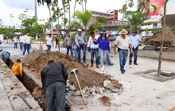Santiago Martínez explicó que ya se avanza en la colocación de losetas, se ultiman detalles en jardineras, alumbrado público y otros aspectos que darán una nueva imagen urbana a la principal plaza de los tapachultecos.