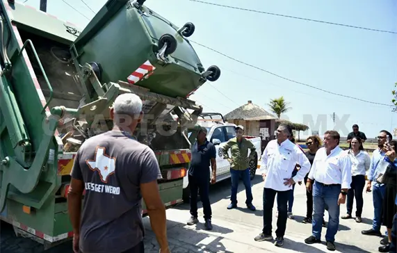 En gira de trabajo por Puerto Madero, el presidente municipal Yamil Melgar Bravo supervisó personalmente la correcta operación del servicio de recolección de residuos sólidos, verificando que los camiones trabajen de manera oportuna, eficiente y sin fallas.