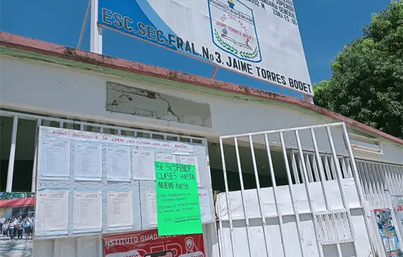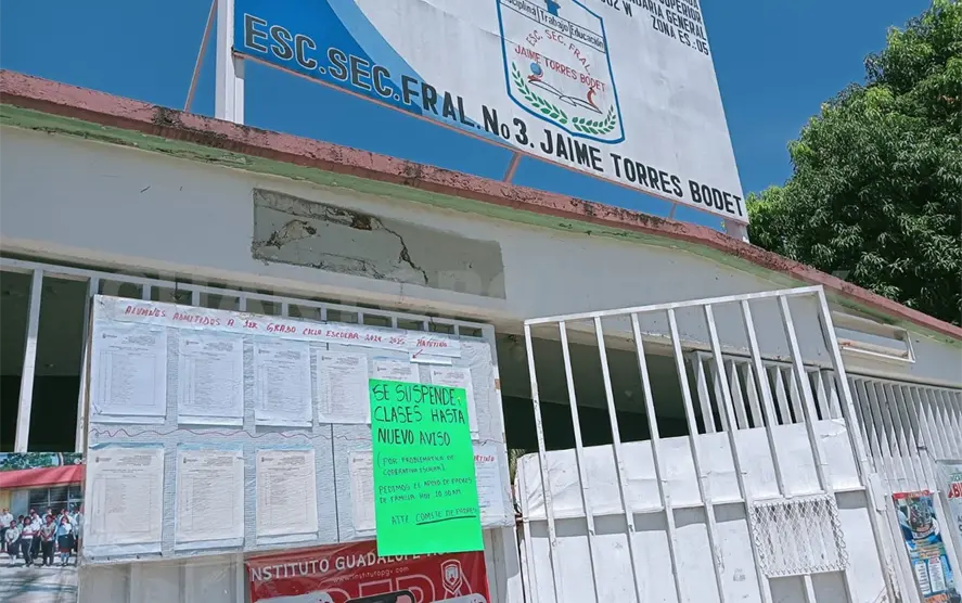 Suspenden clases en Escuela Secundaria Federal “Jaime Torres Bodet”, de Tapachula. Padres de familia tomaron la determinación como una manera de protesta ante la falta de atención y solución a la problemática del desfalco de la cooperativa escolar, por parte de la extesorera del ciclo escolar 2022-2023, acusan que fue protegida por el director y hora se desempeña como funcionaria en la institución.