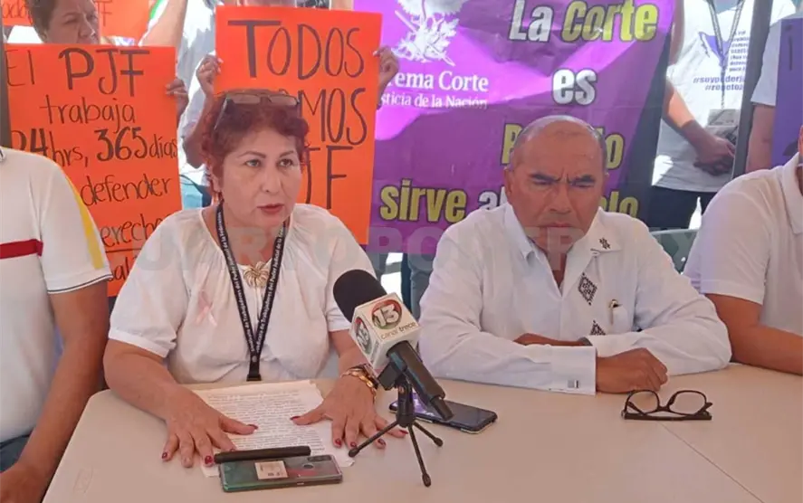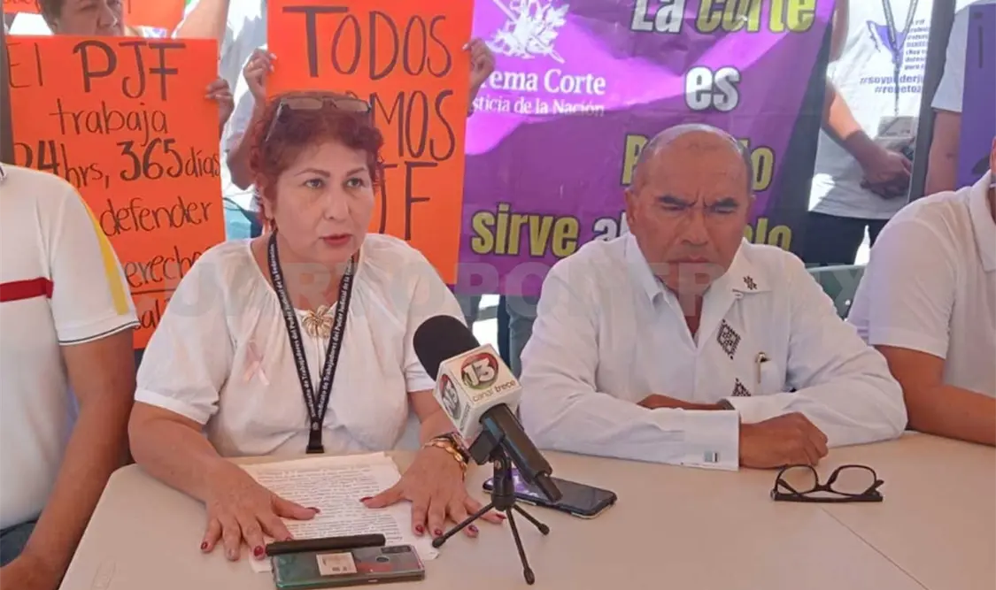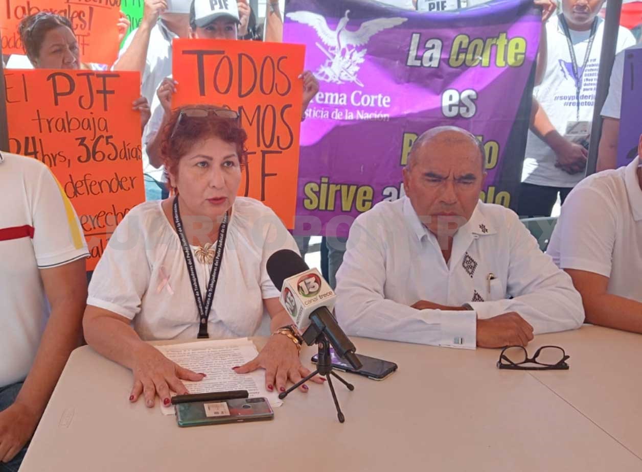 En rueda de prensa, Lilia Ocampo González, secretaría del sindicato del PJF sección Tapachula que agrupa a más de 200 trabajadores, afirmó que la suspensión de labores será hasta el 24 de octubre, como parte de las acciones emprendidas por sus compañeros sindicalizados a nivel nacional.
