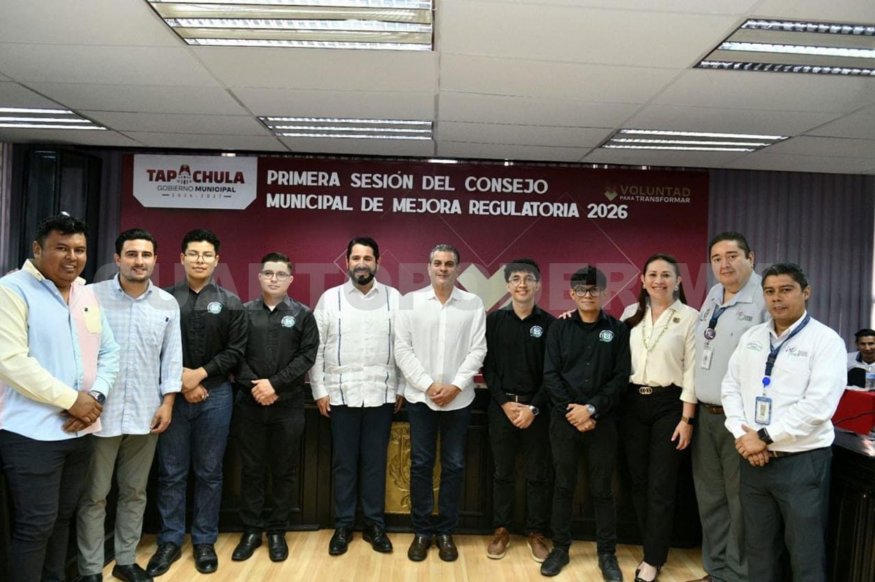 Durante su participación en la 1.ª Sesión del Consejo Municipal de Mejora Regulatoria 2026, el alcalde Yamil Melgar Bravo afirmó que, con la suma de voluntades de los sectores industrial, académico, productivo y empresarial, Tapachula avanza hacia la digitalización de sus servicios, con el objetivo de brindar atención más rápida, transparente y accesible a la ciudadanía.