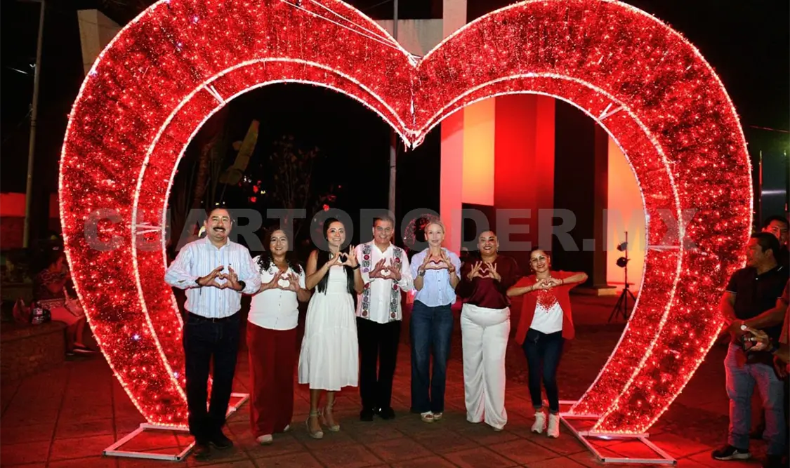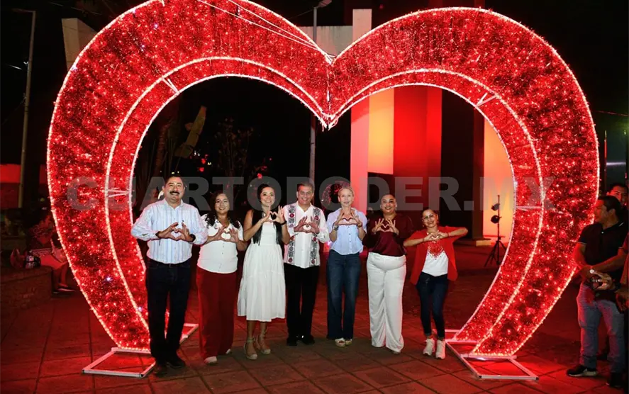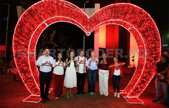 El presidente municipal de Tapachula, Yamil Melgar Bravo, y la directora general del Cobach, Viridiana Figueroa García en representación del gobernador del estado, Eduardo Ramírez Aguilar, inauguraron los escenarios alusivos al Día del Amor y la Amistad en el parque Bicentenario como parte de la estrategia Tapachula se Vive con Amor y Humanismo.