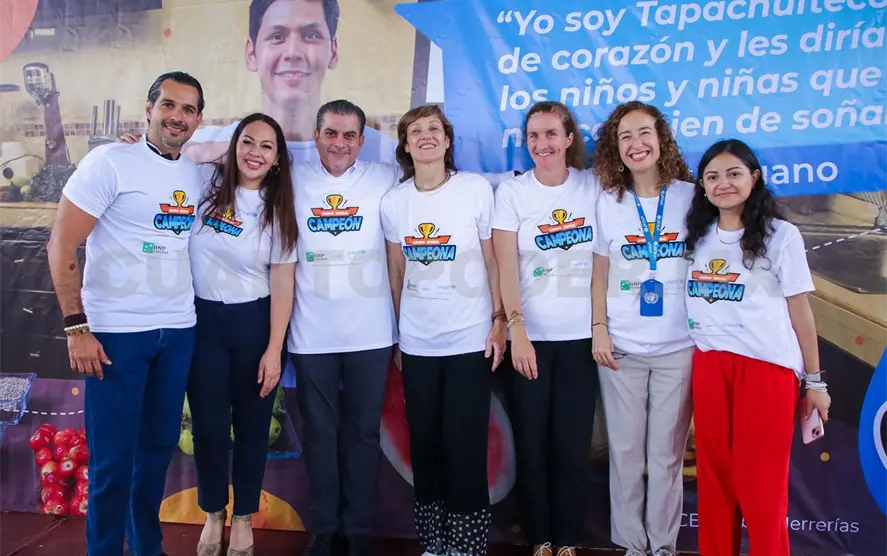 En su intervención, la jefa de Salud y Nutrición de Unicef México, Cecilia de Bustos y la jefa de oficina de Unicef México en Chiapas, Isabel Velazco Luna, resaltaron que Tapachula se ha distinguido por ser el primer municipio a nivel nacional en implementar la estrategia “Come como campeón y campeona”, un trabajo del Fondo que previene el sobrepeso y la obesidad, fortaleciendo la salud de la niñez de una ciudad que se distingue por su disposición por el trabajo colaborativo y la calidez de su gente.