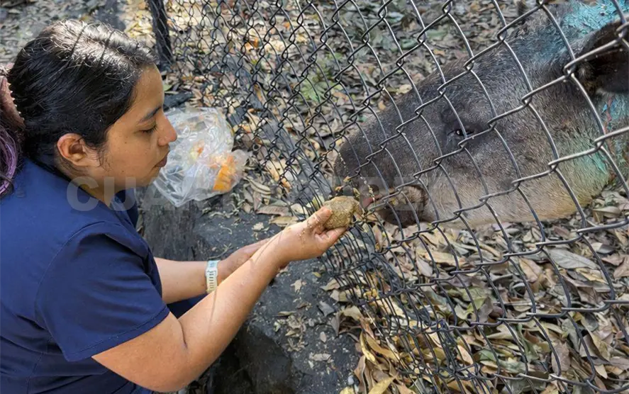El tapir centroamericano rescatado en Las Choapas, Veracruz, continúa bajo atención médica y seguimiento permanente por parte del equipo veterinario del Zoológico Miguel Álvarez del Toro (ZooMAT).