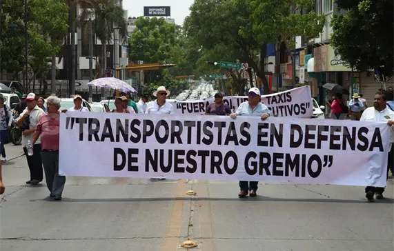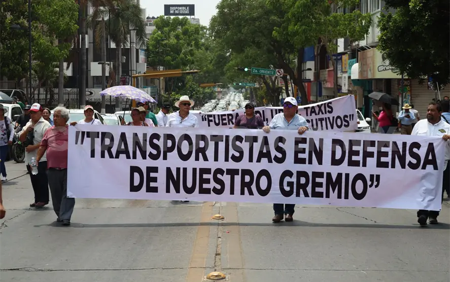 Al menos 800 taxistas de Tuxtla Gutiérrez se manifestaron para exigir la aplicación de la Ley de Transporte a quienes conducen unidades bajo el esquema de plataformas Uber y Didi.