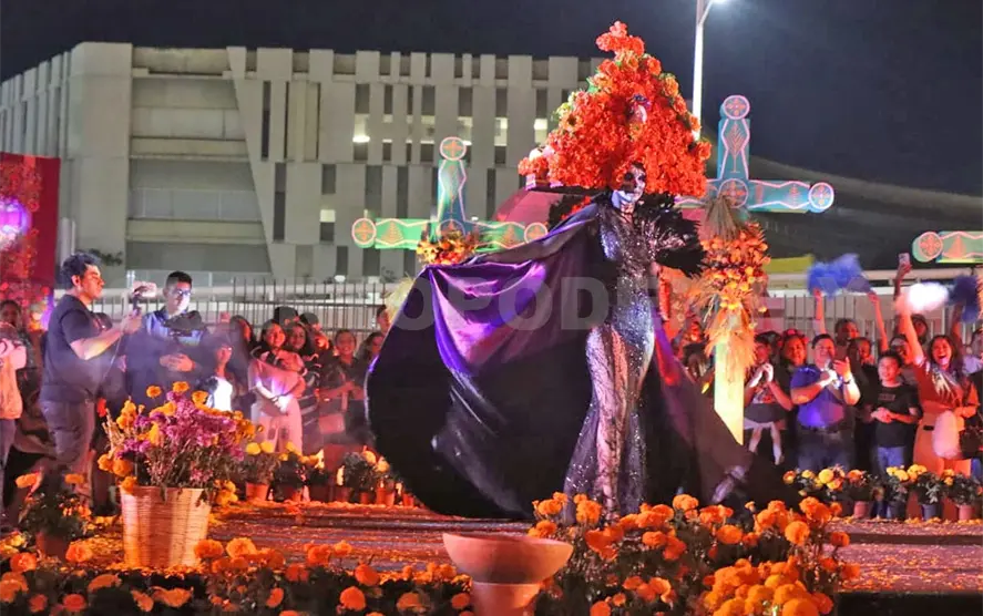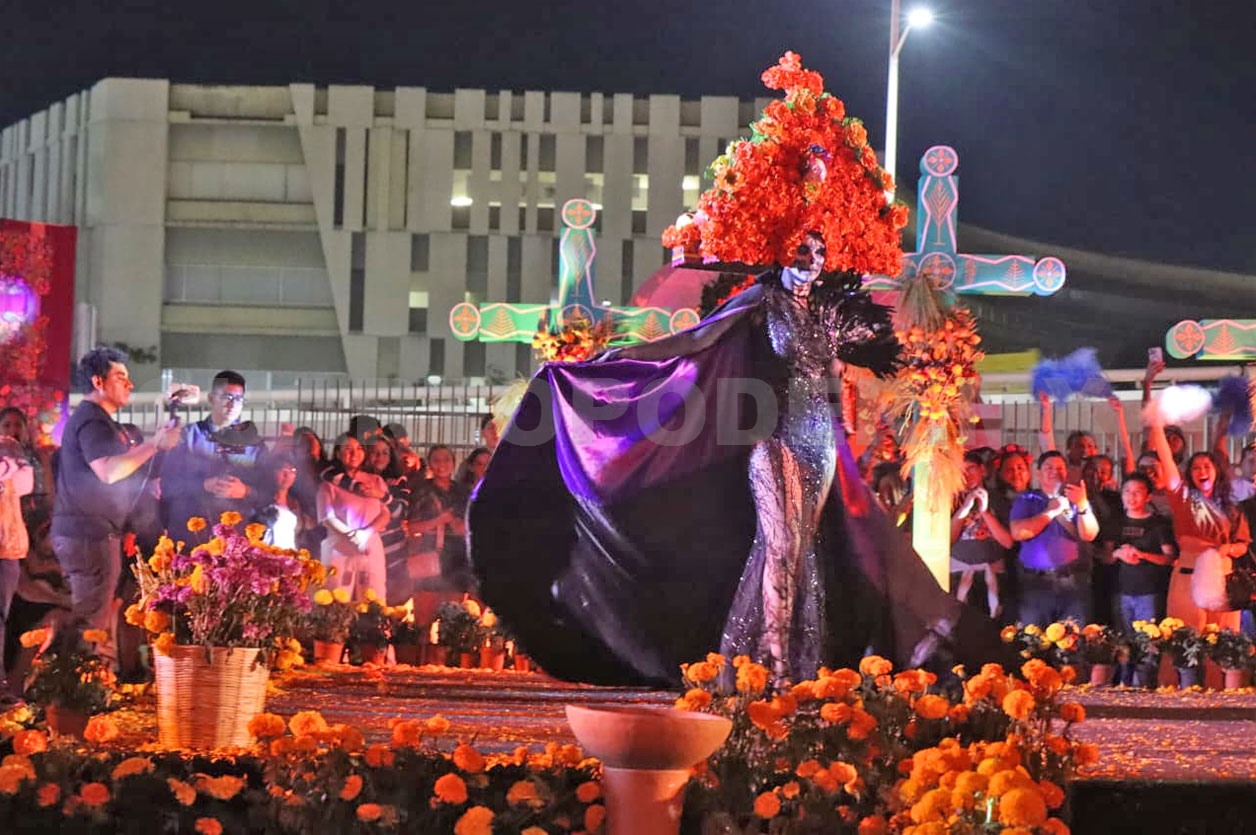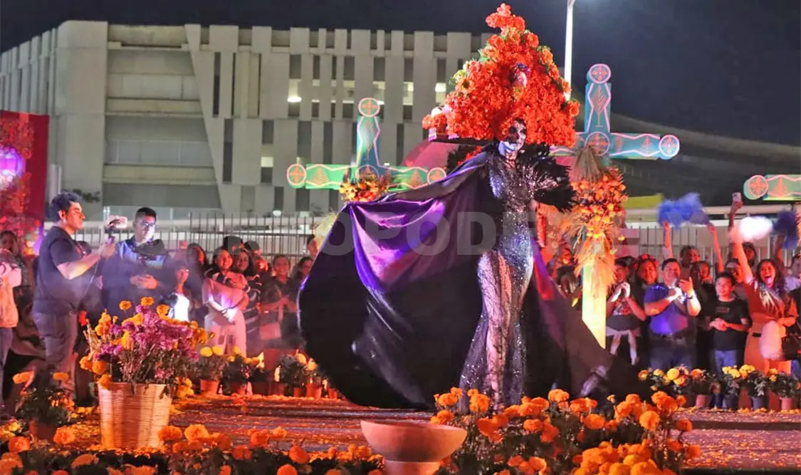 Entre la gran variedad de participantes, cautivó al público el traje de la niña Celia Elizabeth Palacios Santos, “La Catrina Diosa del Maíz”, con un imponente atuendo, confeccionado con materiales biodegradables como totomoxtle y maíz, incluía una falda y corona doradas que simbolizaban el sustento, y un báculo con un cráneo.