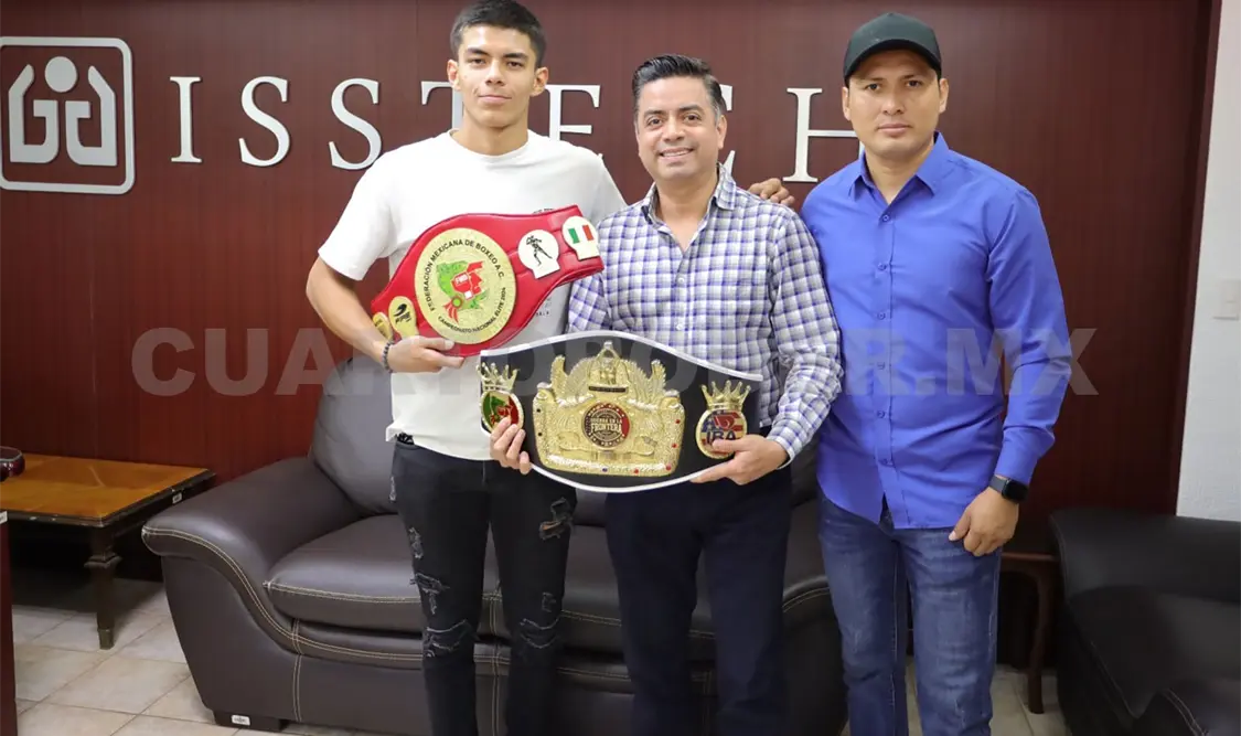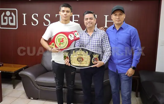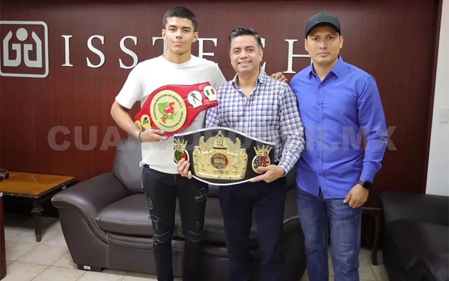 El titular del Instituto de Seguridad Social de los Trabajadores del Estado de Chiapas (Isstech), Armando Barrios Fierro, felicitó al pugilista Leonardo Villegas y a su entrenador Jorge Palacios Murias, quienes se coronaron campeones nacionales de Primera Fuerza y representarán a México en el Mundial de Boxeo en Kazajistán.