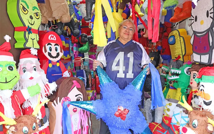 Desde hace más de 23 años la señora Judith Alvarado Hernández inició con el negocio familiar de venta de piñatas. Al comenzar, junto a su papás y hermanas, fabricaban menos de 10 y las ganancias las invertían para seguir y aumentar la producción, hasta llegar a más de 200 piñatas.