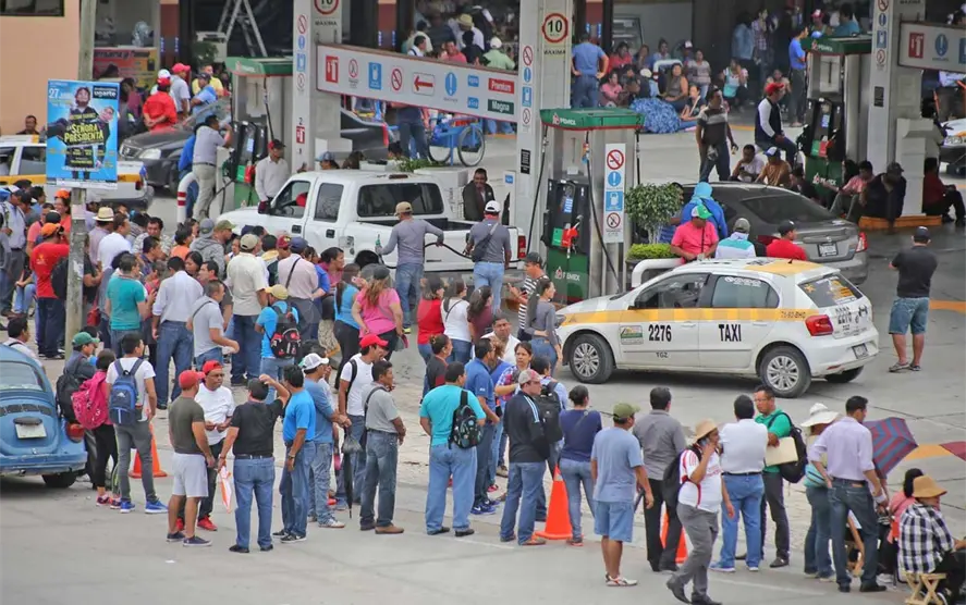 En un día más de movilizaciones, profesores de la Coordinadora Nacional de Trabajadores de la Educación (CNTE) de la Sección 7 y 40, radicalizaron sus acciones en la capital chiapaneca al regalar entre 10 y 20 litros de gasolina a los automovilistas y motociclistas en, al menos, 25 establecimientos, lo que generó largas filas y congestionamiento vial para obtener el combustible.