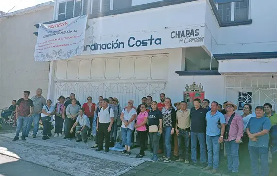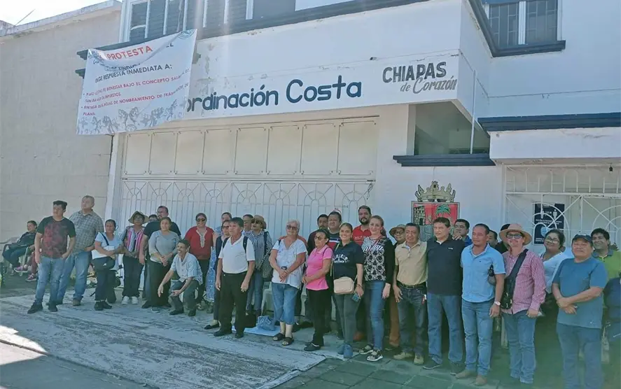 Los inconformes se identificaron como trabajadores miembros del Sindicato Único e Independiente del Colegio de Bachilleres de Chiapas (Suicobach), mismos que se plantaron en la entrada de las oficinas de la Coordinación Zona Costa, ante la falta de atención de las autoridades al cumplimiento del pago de bienestar a tres mil 700 trabajadores administrativos.