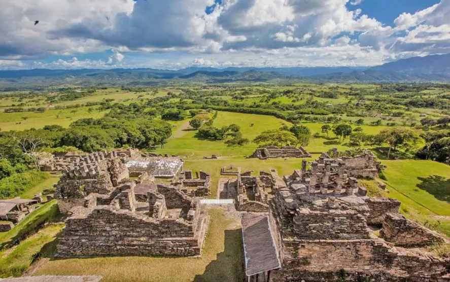 La zona arqueológica alberga una acrópolis de 74 metros de altura (la pirámide más alta de México) con una antigüedad de mil 700 años, que está en espera de que las autoridades y el propietario encuentren una solución para que los turistas puedan volver a ascender sus 260 escalones y Chiapas recupere una de sus joyas turísticas y culturales más brillantes.